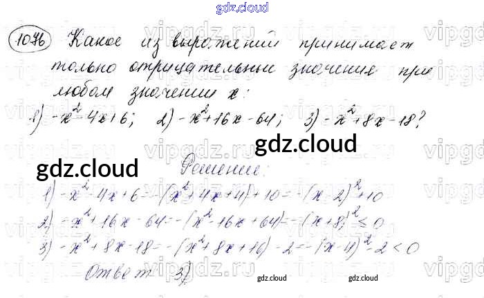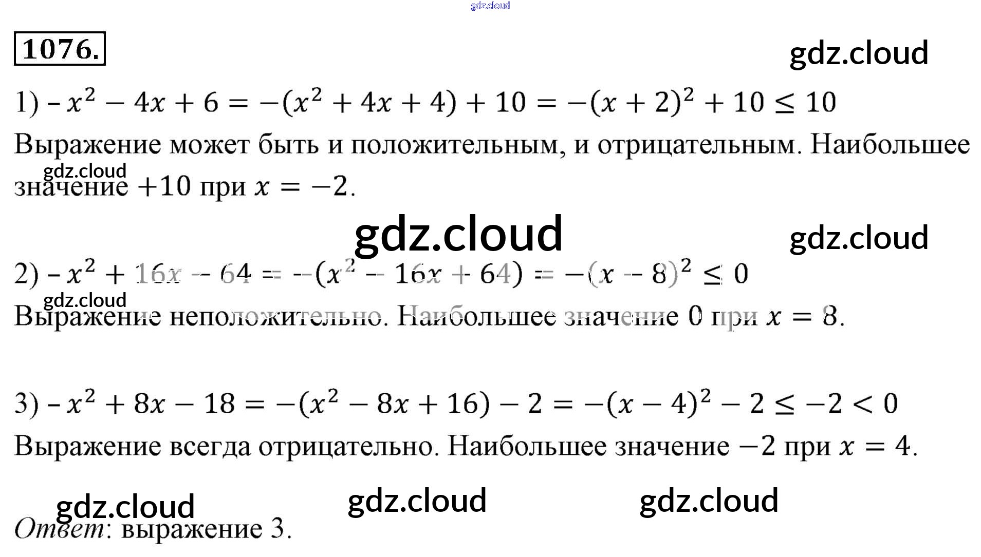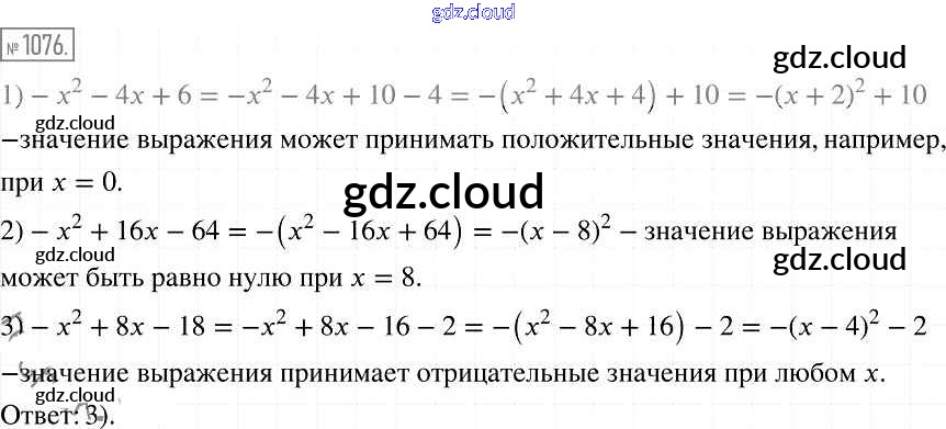 Ответ на задание 1076 Учебник Алгебра  за 7 (седьмой) класс Мерзляк, Полонский, Якир Алгоритм успеха Базовый уровень 2016