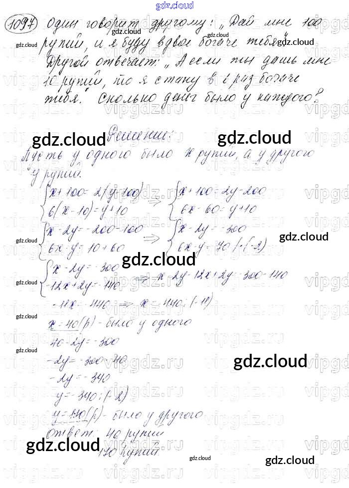Ответ на задание 1097 Учебник Алгебра за 7 (седьмой) класс Мерзляк, Полонский, Якир Алгоритм успеха Базовый уровень 2016