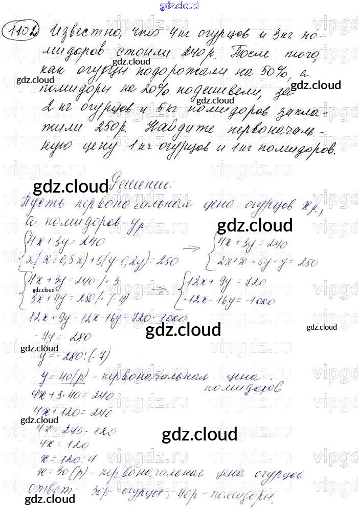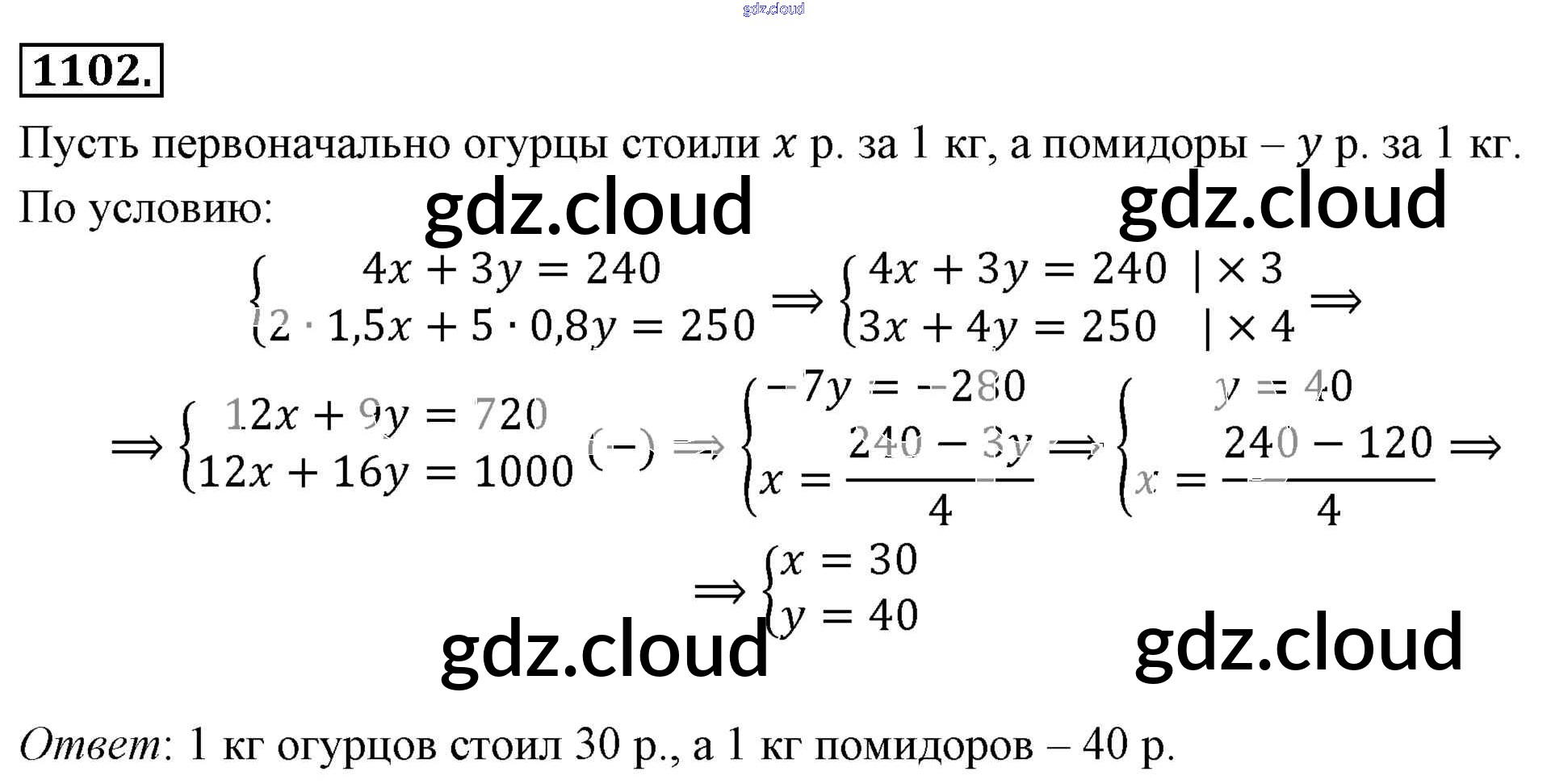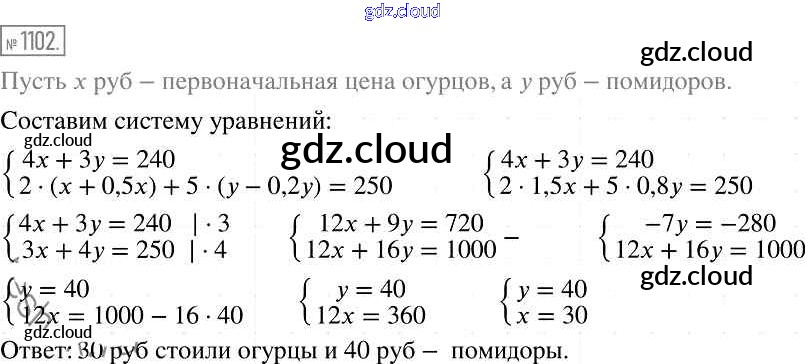 Ответ на задание 1102 Учебник Алгебра  за 7 (седьмой) класс Мерзляк, Полонский, Якир Алгоритм успеха Базовый уровень 2016