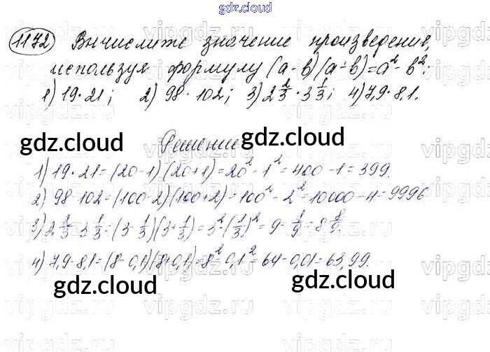 Ответ на задание 1172 Учебник Алгебра за 7 (седьмой) класс Мерзляк, Полонский, Якир Алгоритм успеха Базовый уровень 2016