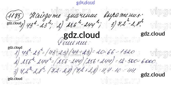 Ответ на задание 1175 Учебник Алгебра за 7 (седьмой) класс Мерзляк, Полонский, Якир Алгоритм успеха Базовый уровень 2016