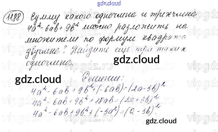 Ответ на задание 1188 Учебник Алгебра за 7 (седьмой) класс Мерзляк, Полонский, Якир Алгоритм успеха Базовый уровень 2016