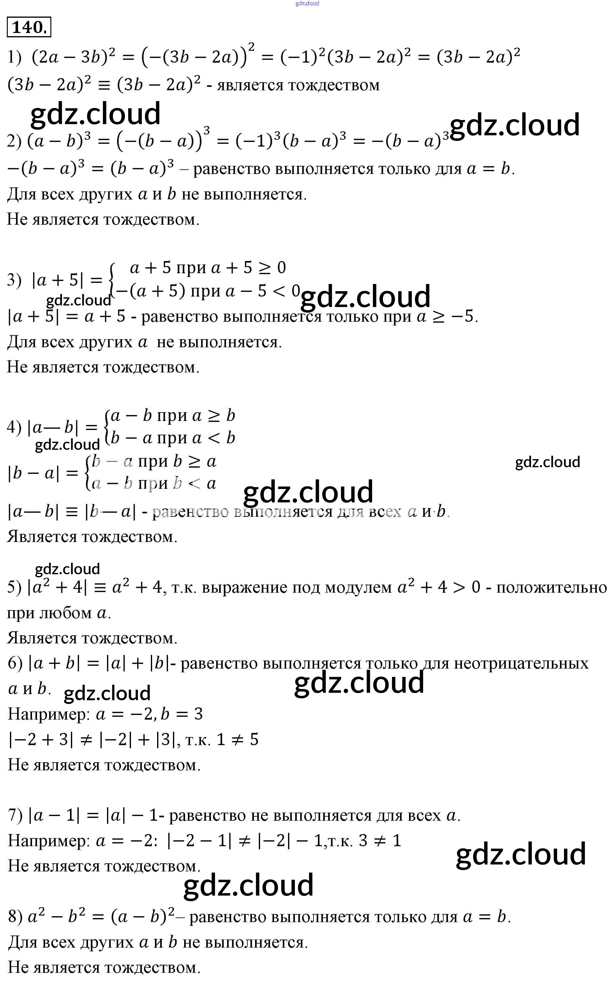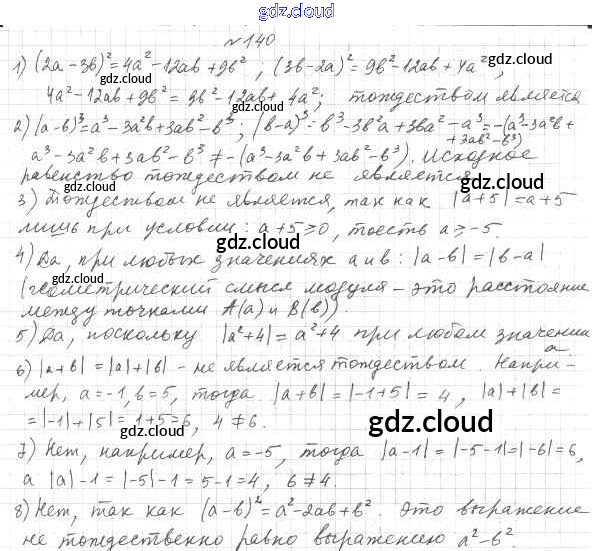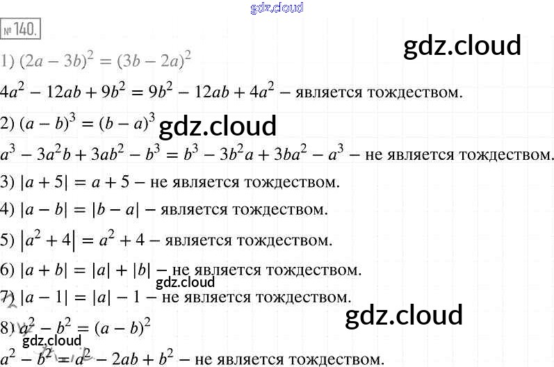 Ответ на задание 140 Учебник Алгебра за 7 (седьмой) класс Мерзляк, Полонский, Якир Алгоритм успеха Базовый уровень 2016