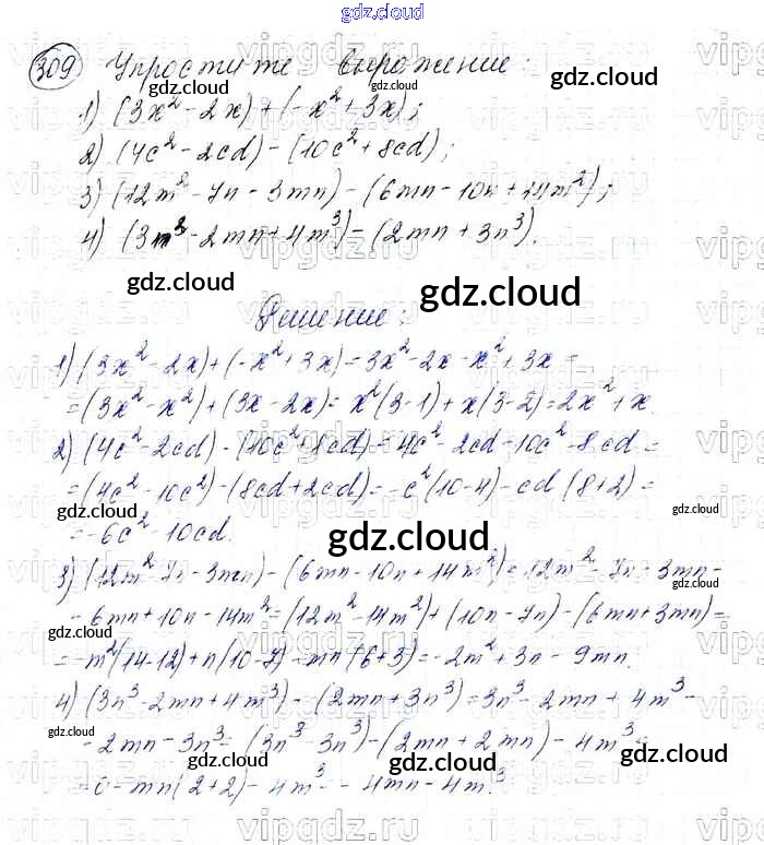 Ответ на задание 309 Учебник Алгебра за 7 (седьмой) класс Мерзляк, Полонский, Якир Алгоритм успеха Базовый уровень 2016