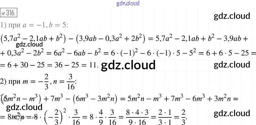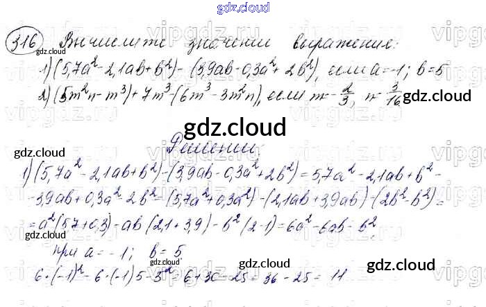 Ответ на задание 316 Учебник Алгебра за 7 (седьмой) класс Мерзляк, Полонский, Якир Алгоритм успеха Базовый уровень 2016