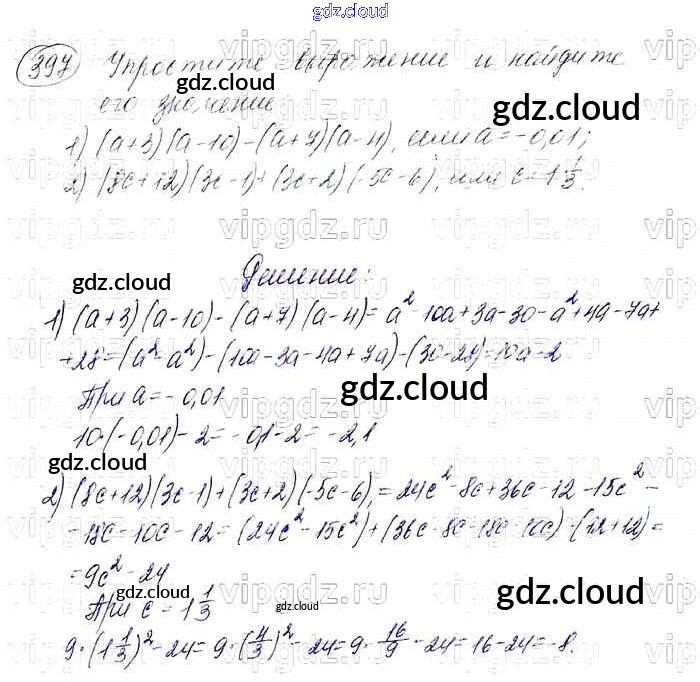 Ответ на задание 397 Учебник Алгебра за 7 (седьмой) класс Мерзляк, Полонский, Якир Алгоритм успеха Базовый уровень 2016