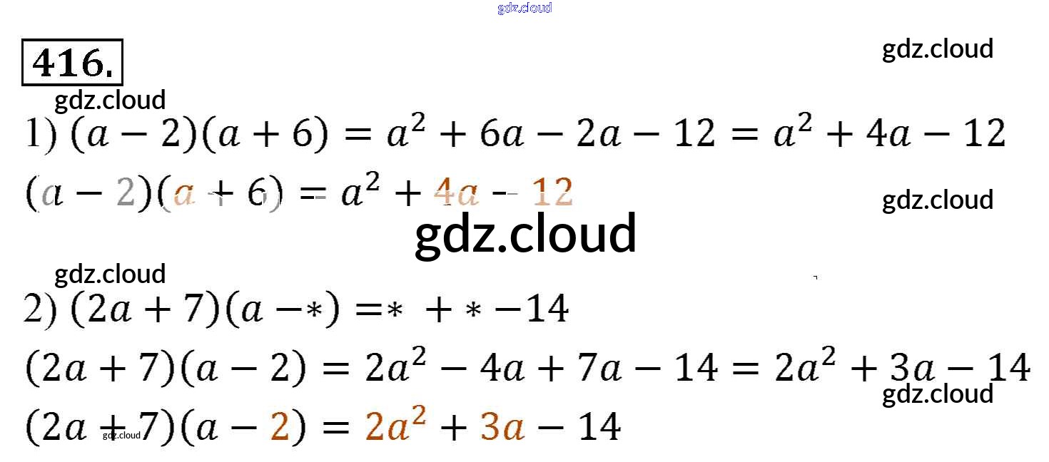 Ответ на задание 416 Учебник Алгебра  за 7 (седьмой) класс Мерзляк, Полонский, Якир Алгоритм успеха Базовый уровень 2016