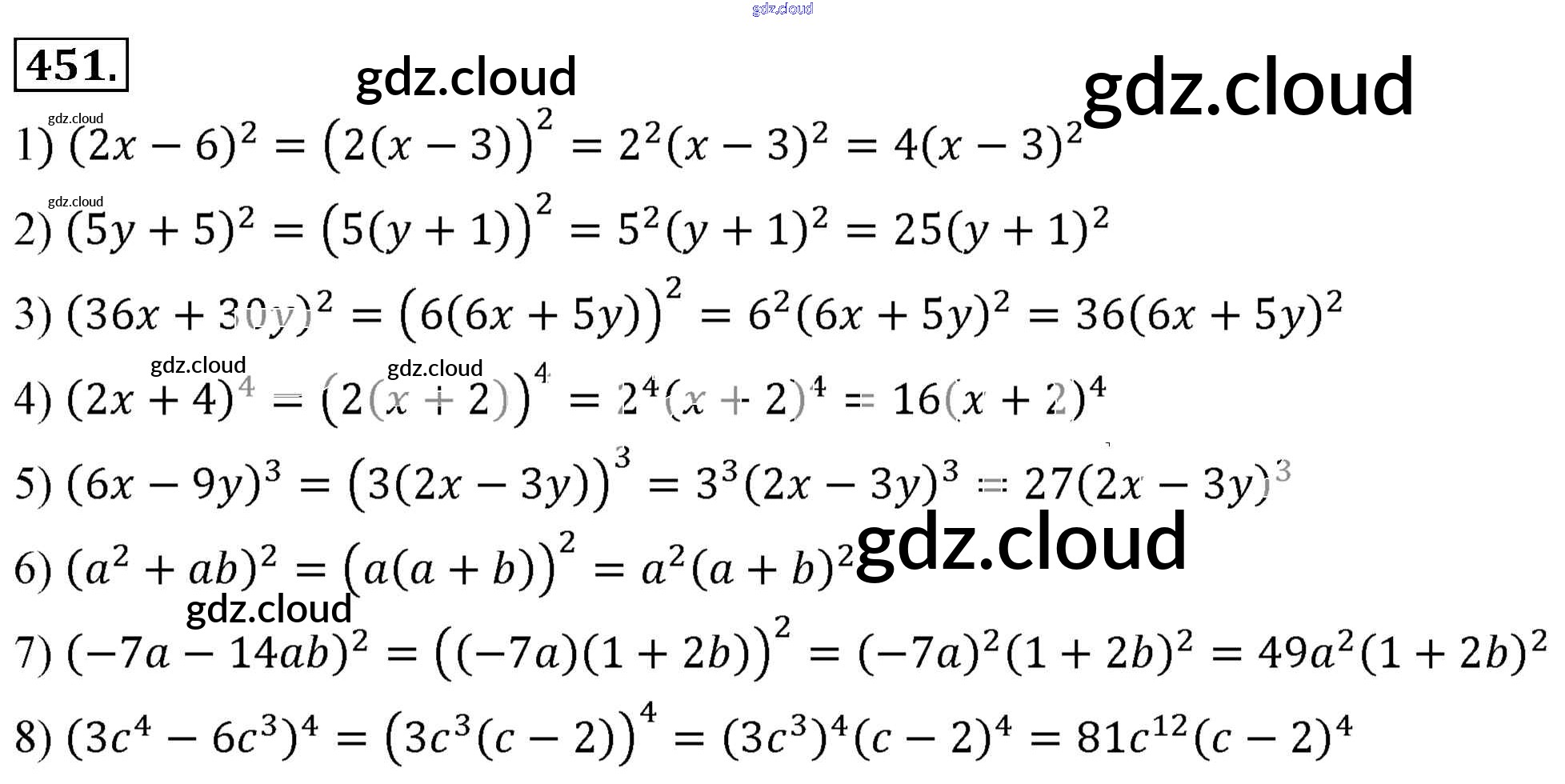 Ответ на задание 451 Учебник Алгебра  за 7 (седьмой) класс Мерзляк, Полонский, Якир Алгоритм успеха Базовый уровень 2016