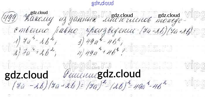 Ответ на задание 499 Учебник Алгебра  за 7 (седьмой) класс Мерзляк, Полонский, Якир Алгоритм успеха Базовый уровень 2016