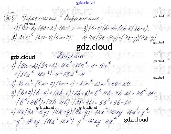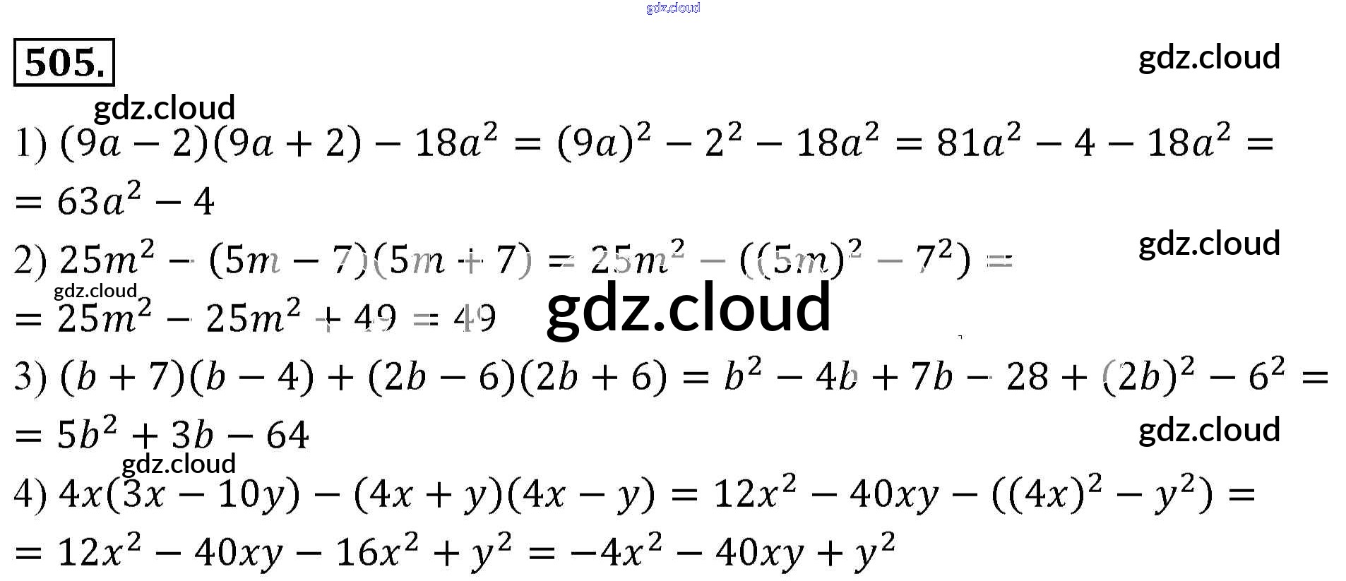 Ответ на задание 505 Учебник Алгебра  за 7 (седьмой) класс Мерзляк, Полонский, Якир Алгоритм успеха Базовый уровень 2016