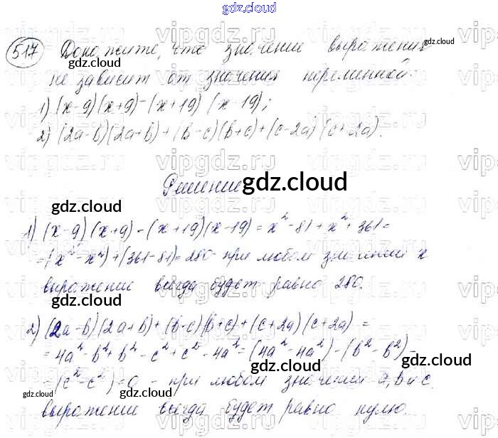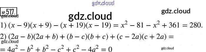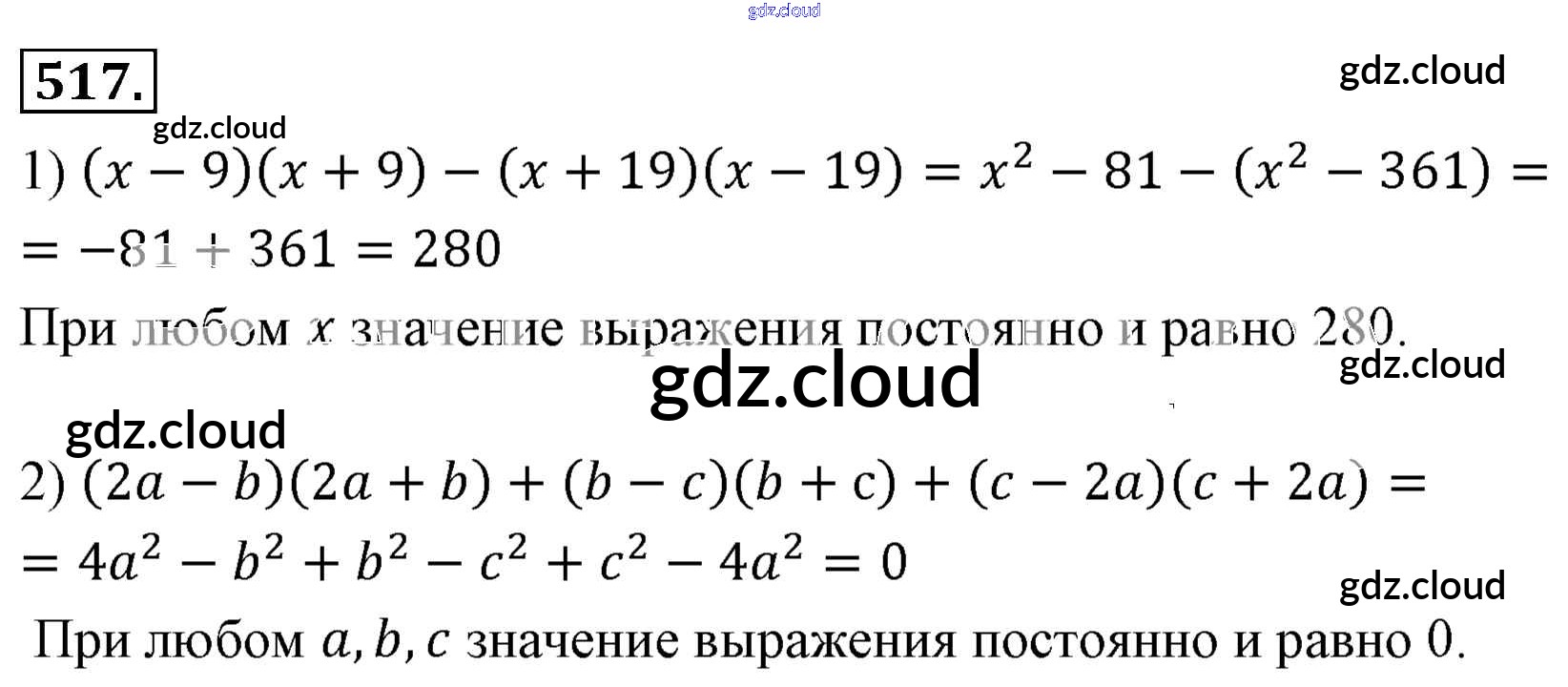 Ответ на задание 517 Учебник Алгебра за 7 (седьмой) класс Мерзляк, Полонский, Якир Алгоритм успеха Базовый уровень 2016