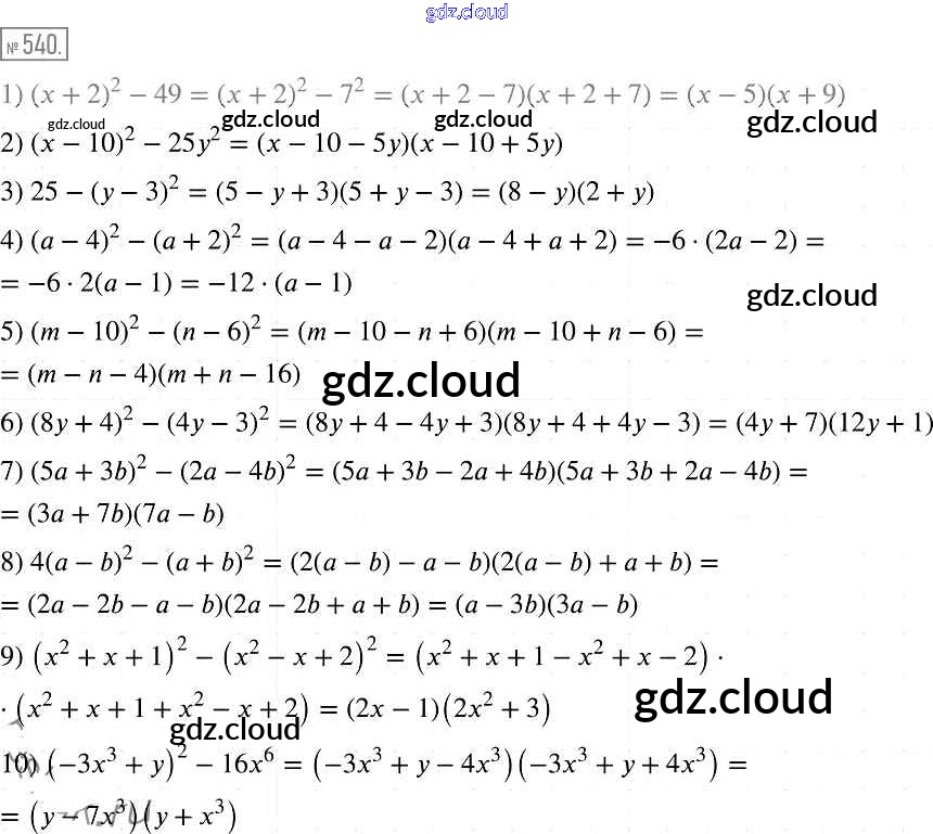 Ответ на задание 540 Учебник Алгебра за 7 (седьмой) класс Мерзляк, Полонский, Якир Алгоритм успеха Базовый уровень 2016