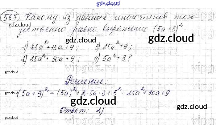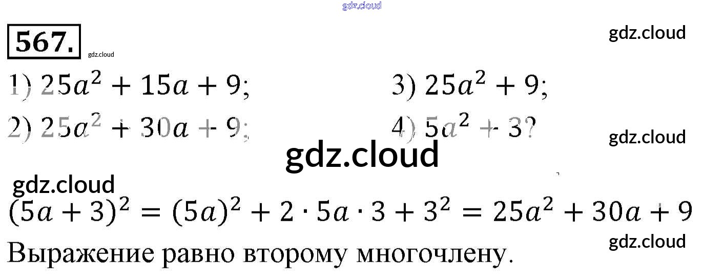 Ответ на задание 567 Учебник Алгебра за 7 (седьмой) класс Мерзляк, Полонский, Якир Алгоритм успеха Базовый уровень 2016