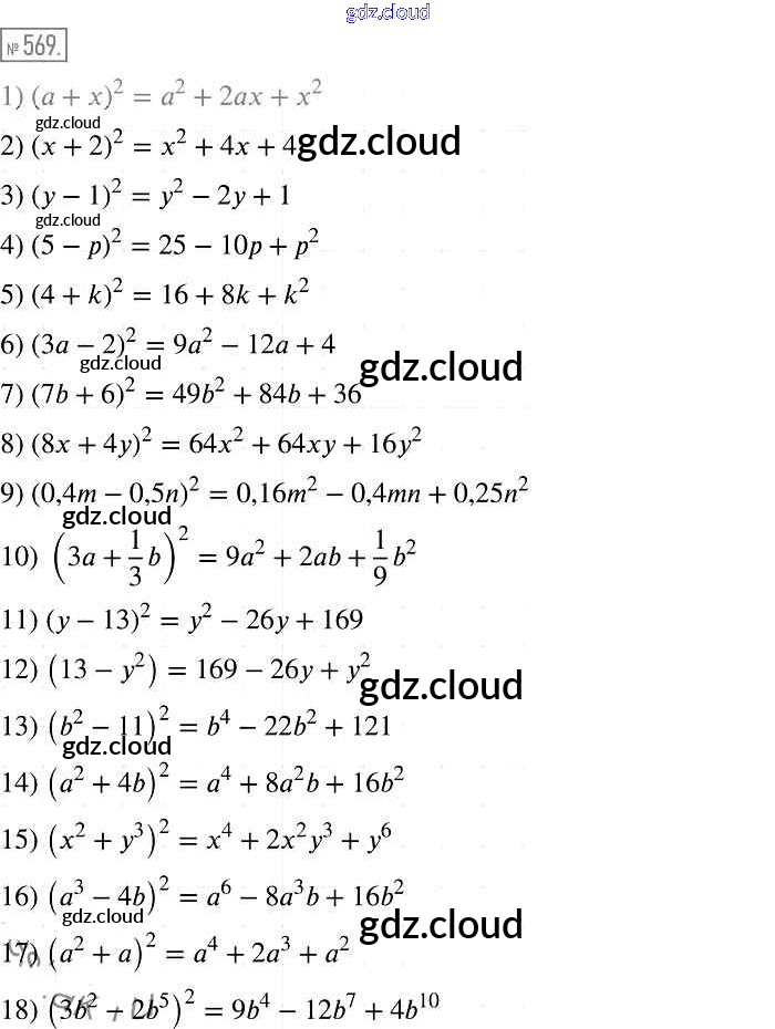 Ответ на задание 569 Учебник Алгебра  за 7 (седьмой) класс Мерзляк, Полонский, Якир Алгоритм успеха Базовый уровень 2016
