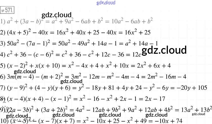 Ответ на задание 571 Учебник Алгебра за 7 (седьмой) класс Мерзляк, Полонский, Якир Алгоритм успеха Базовый уровень 2016