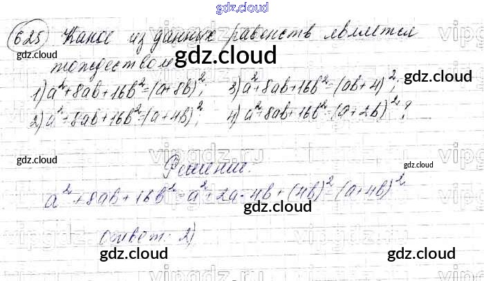 Ответ на задание 625 Учебник Алгебра  за 7 (седьмой) класс Мерзляк, Полонский, Якир Алгоритм успеха Базовый уровень 2016