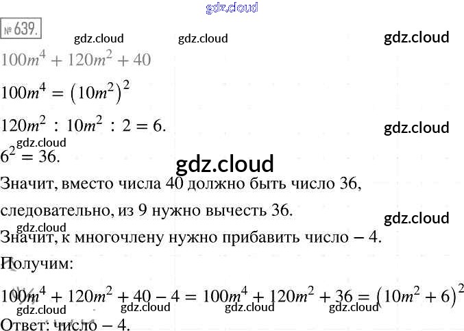 Ответ на задание 639 Учебник Алгебра  за 7 (седьмой) класс Мерзляк, Полонский, Якир Алгоритм успеха Базовый уровень 2016