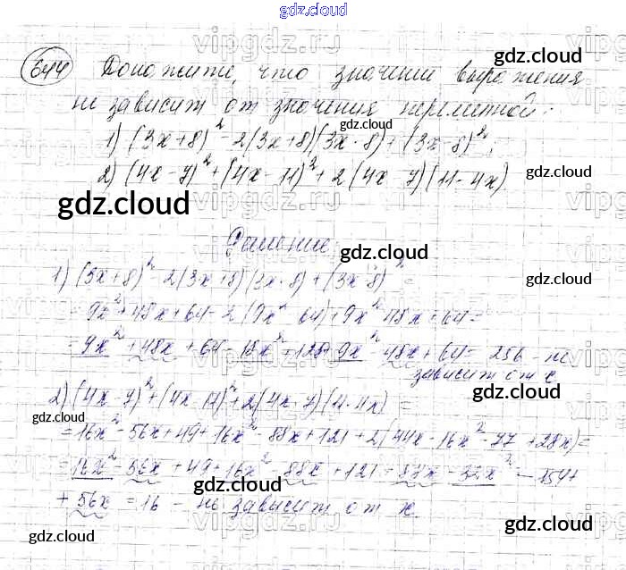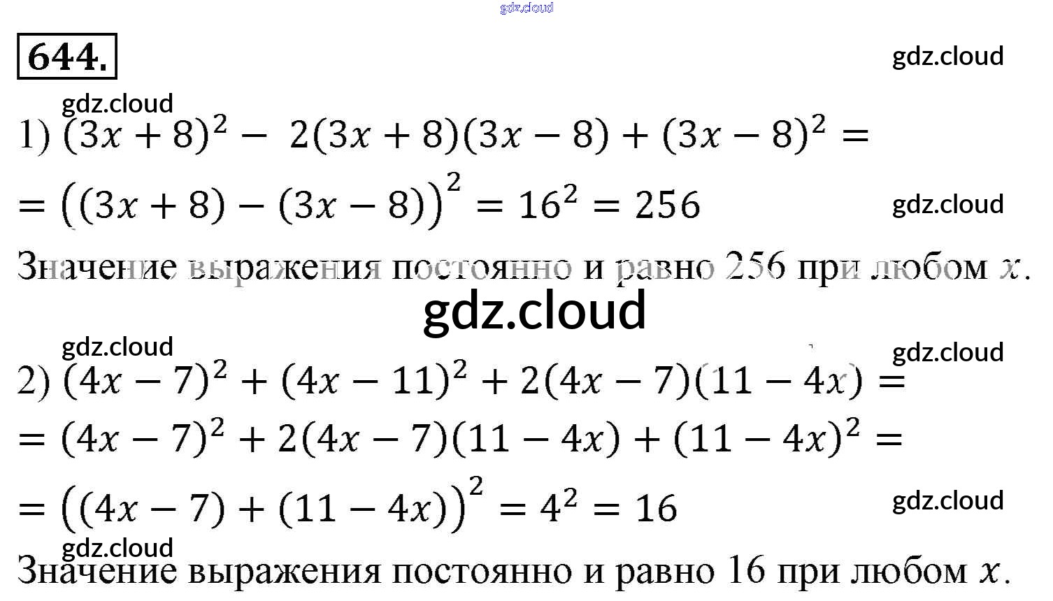 Ответ на задание 644 Учебник Алгебра  за 7 (седьмой) класс Мерзляк, Полонский, Якир Алгоритм успеха Базовый уровень 2016