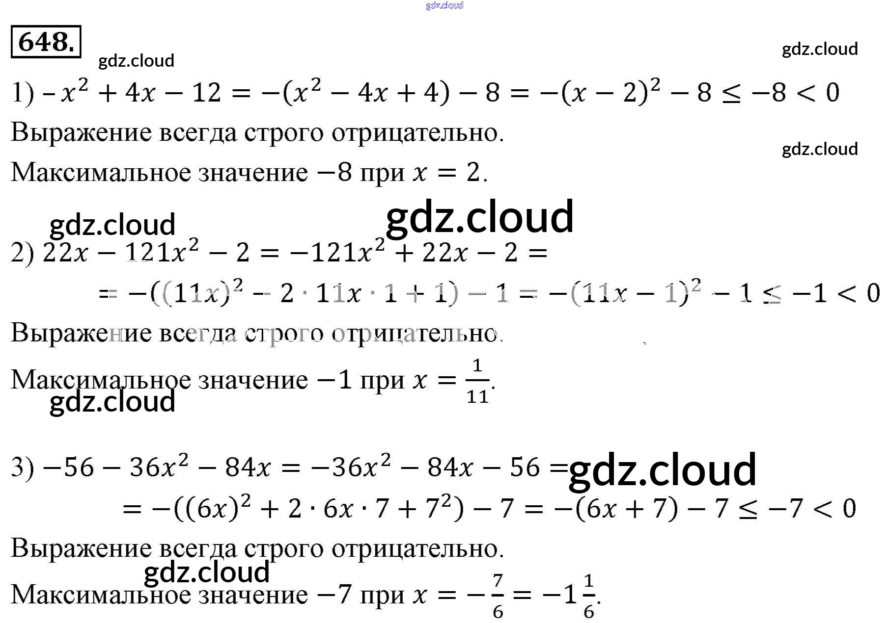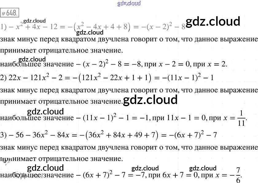 Ответ на задание 648 Учебник Алгебра за 7 (седьмой) класс Мерзляк, Полонский, Якир Алгоритм успеха Базовый уровень 2016
