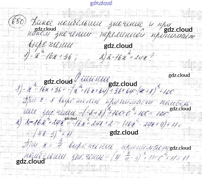 Ответ на задание 650 Учебник Алгебра  за 7 (седьмой) класс Мерзляк, Полонский, Якир Алгоритм успеха Базовый уровень 2016