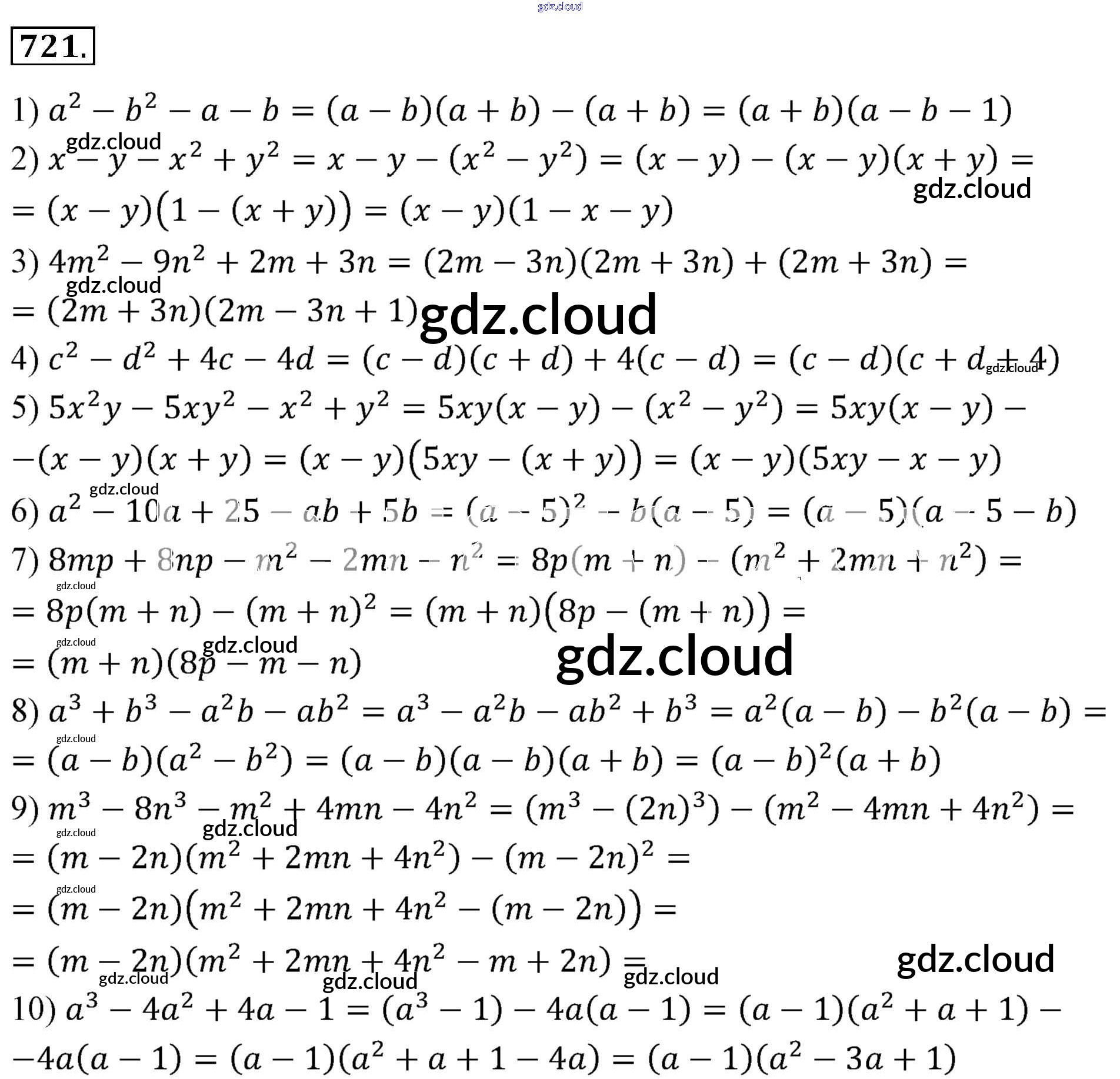 Ответ на задание 721 Учебник Алгебра за 7 (седьмой) класс Мерзляк, Полонский, Якир Алгоритм успеха Базовый уровень 2016