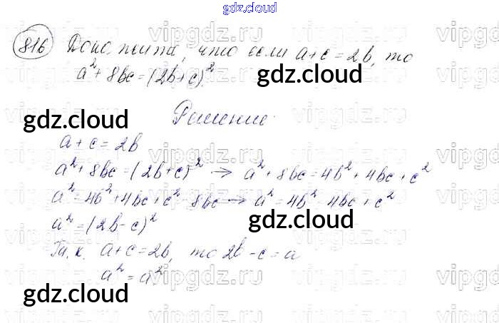 Ответ на задание 816 Учебник Алгебра  за 7 (седьмой) класс Мерзляк, Полонский, Якир Алгоритм успеха Базовый уровень 2016