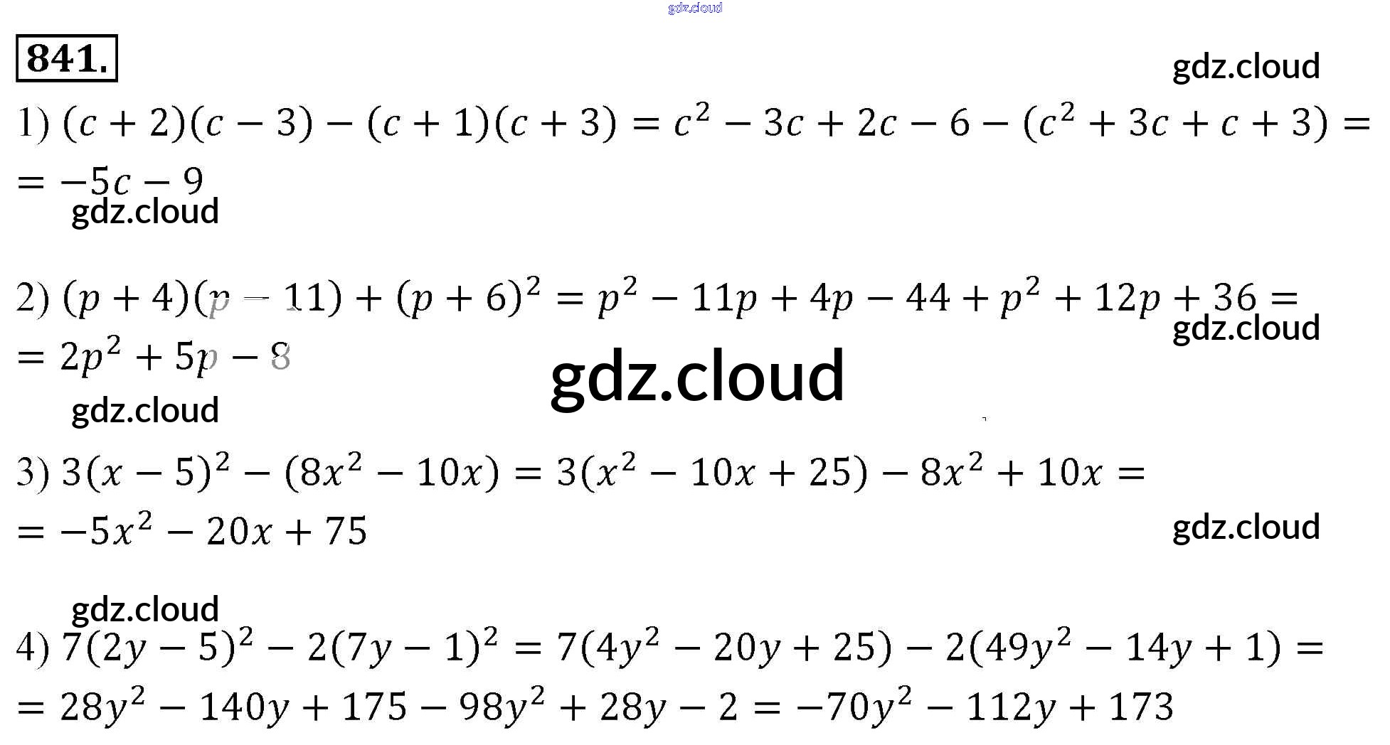 Ответ на задание 841 Учебник Алгебра  за 7 (седьмой) класс Мерзляк, Полонский, Якир Алгоритм успеха Базовый уровень 2016