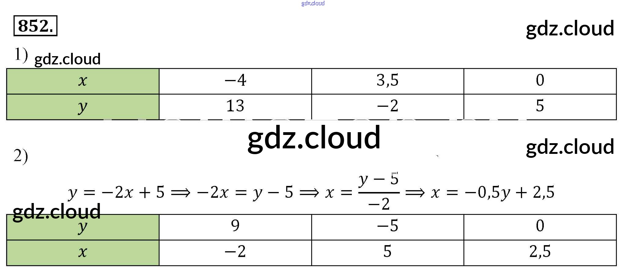 Ответ на задание 852 Учебник Алгебра  за 7 (седьмой) класс Мерзляк, Полонский, Якир Алгоритм успеха Базовый уровень 2016