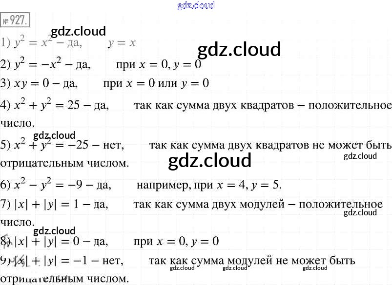 Ответ на задание 927 Учебник Алгебра за 7 (седьмой) класс Мерзляк, Полонский, Якир Алгоритм успеха Базовый уровень 2016