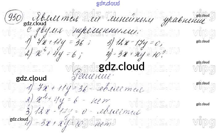 Ответ на задание 950 Учебник Алгебра  за 7 (седьмой) класс Мерзляк, Полонский, Якир Алгоритм успеха Базовый уровень 2016
