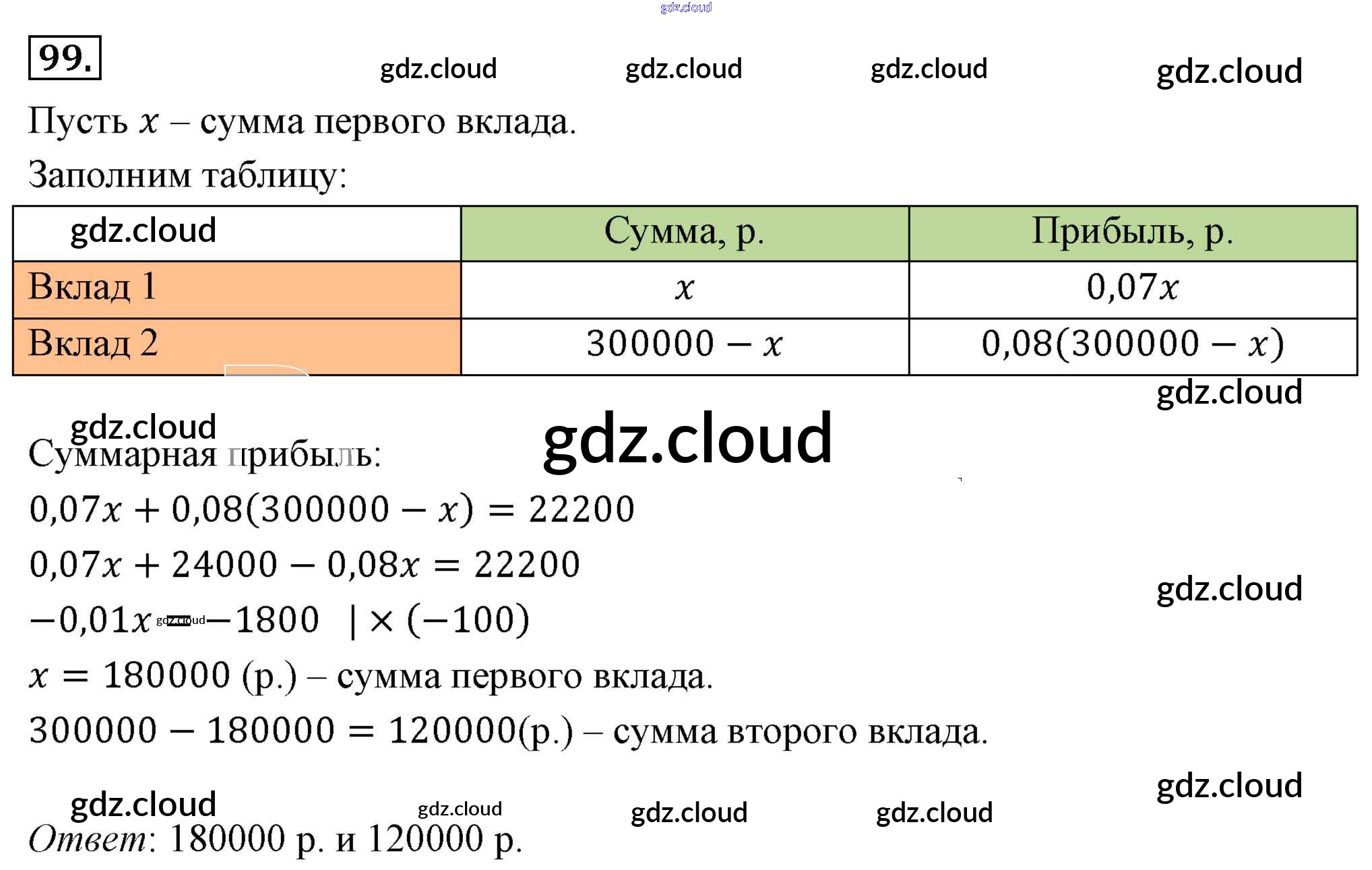 Ответ на задание 99 Учебник Алгебра за 7 (седьмой) класс Мерзляк, Полонский, Якир Алгоритм успеха Базовый уровень 2016