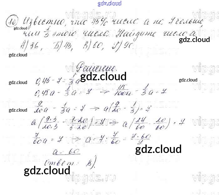 Ответ на задание 10 Учебник Алгебра  за 7 (седьмой) класс Мерзляк, Полонский, Якир Алгоритм успеха Базовый уровень 2016