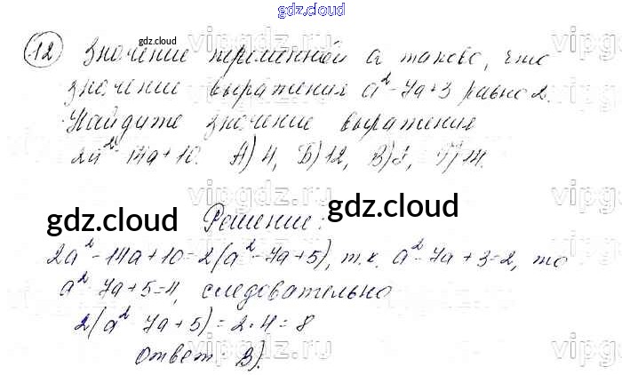 Ответ на задание 12 Учебник Алгебра  за 7 (седьмой) класс Мерзляк, Полонский, Якир Алгоритм успеха Базовый уровень 2016