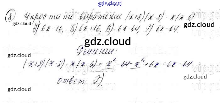 Ответ на задание 8 Учебник Алгебра  за 7 (седьмой) класс Мерзляк, Полонский, Якир Алгоритм успеха Базовый уровень 2016