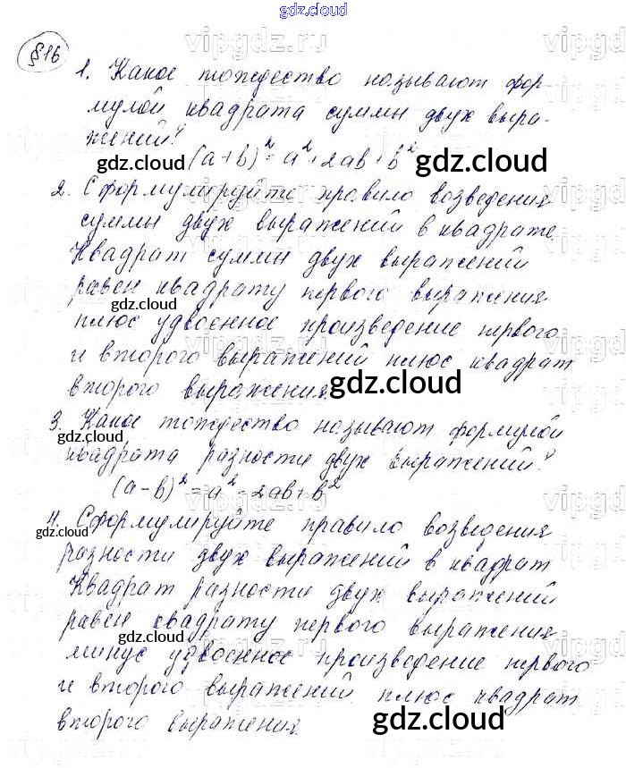 Ответы к Вопросам к параграфам  по Алгебре 7 класс Учебник Мерзляк Алгоритм успеха Базовый уровень  Вентана-граф