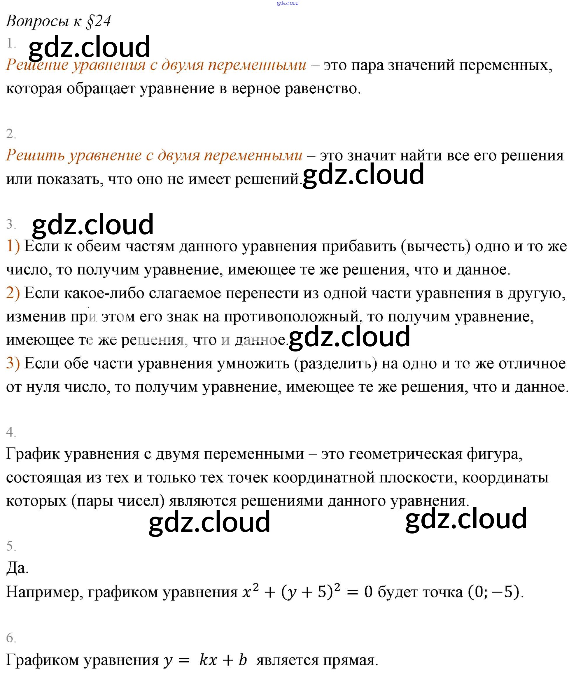 Ответы к Вопросам к параграфам  по Алгебре 7 класс Учебник Мерзляк Алгоритм успеха Базовый уровень  Вентана-граф