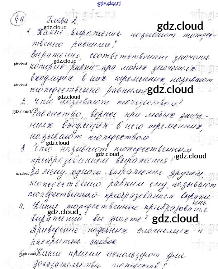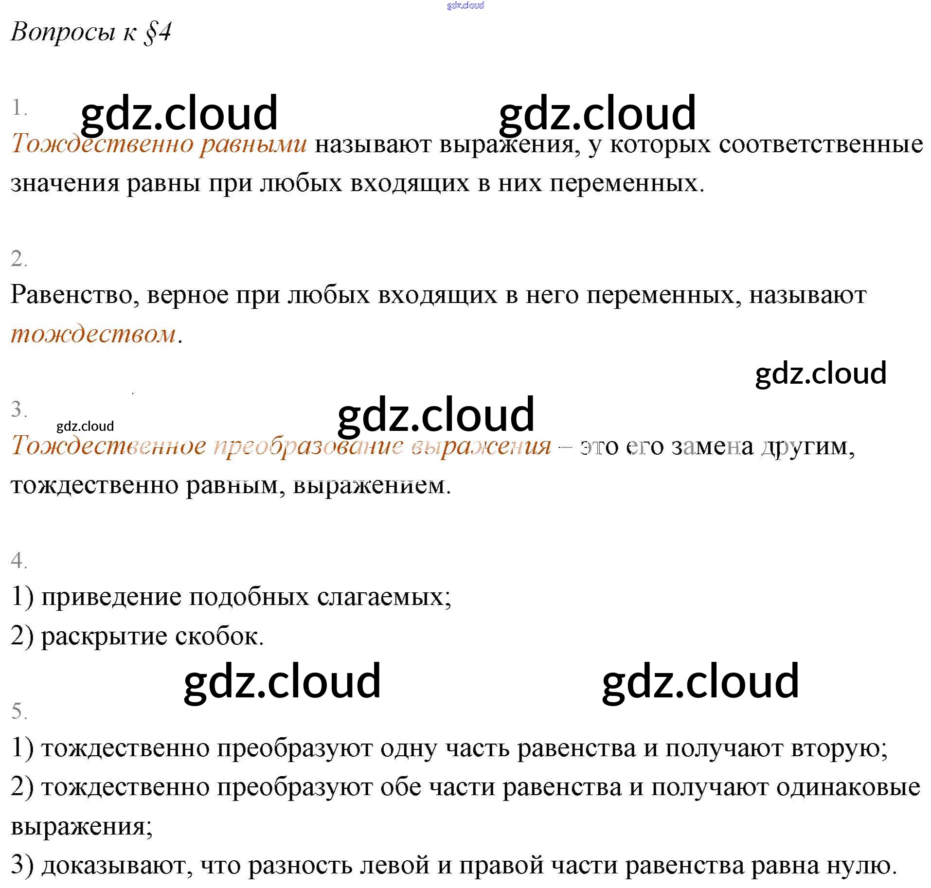Ответы к Вопросам к параграфам  по Алгебре 7 класс Учебник Мерзляк Алгоритм успеха Базовый уровень  Вентана-граф