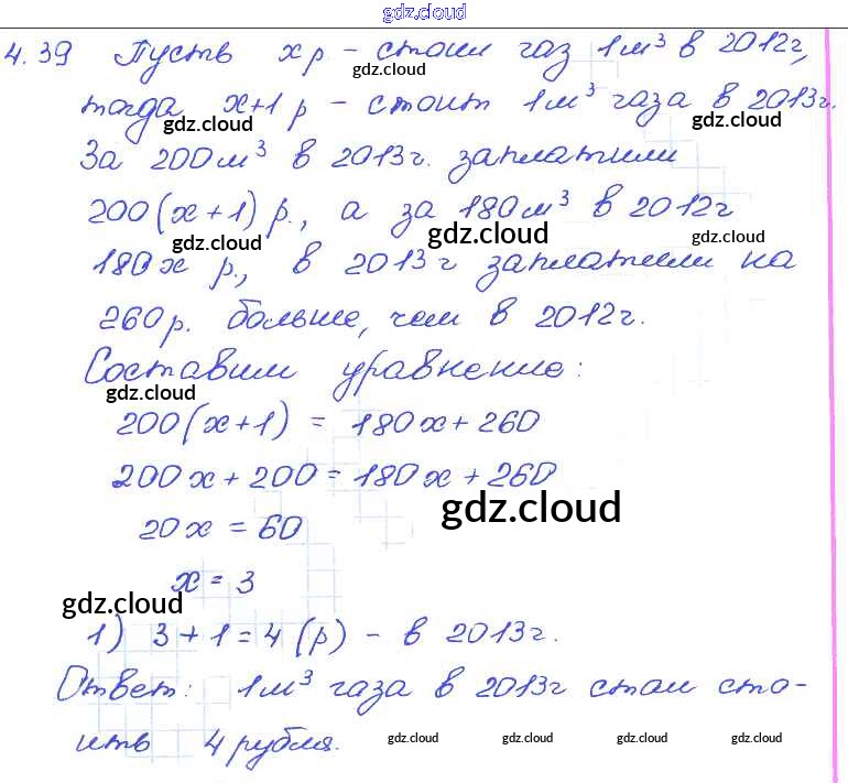 Ответ на задание 39 Задачник Алгебра  за 7 (седьмой) класс Мордкович, Александрова, Мишустина, Тульчинская  Базовый уровень 2013 Часть 2