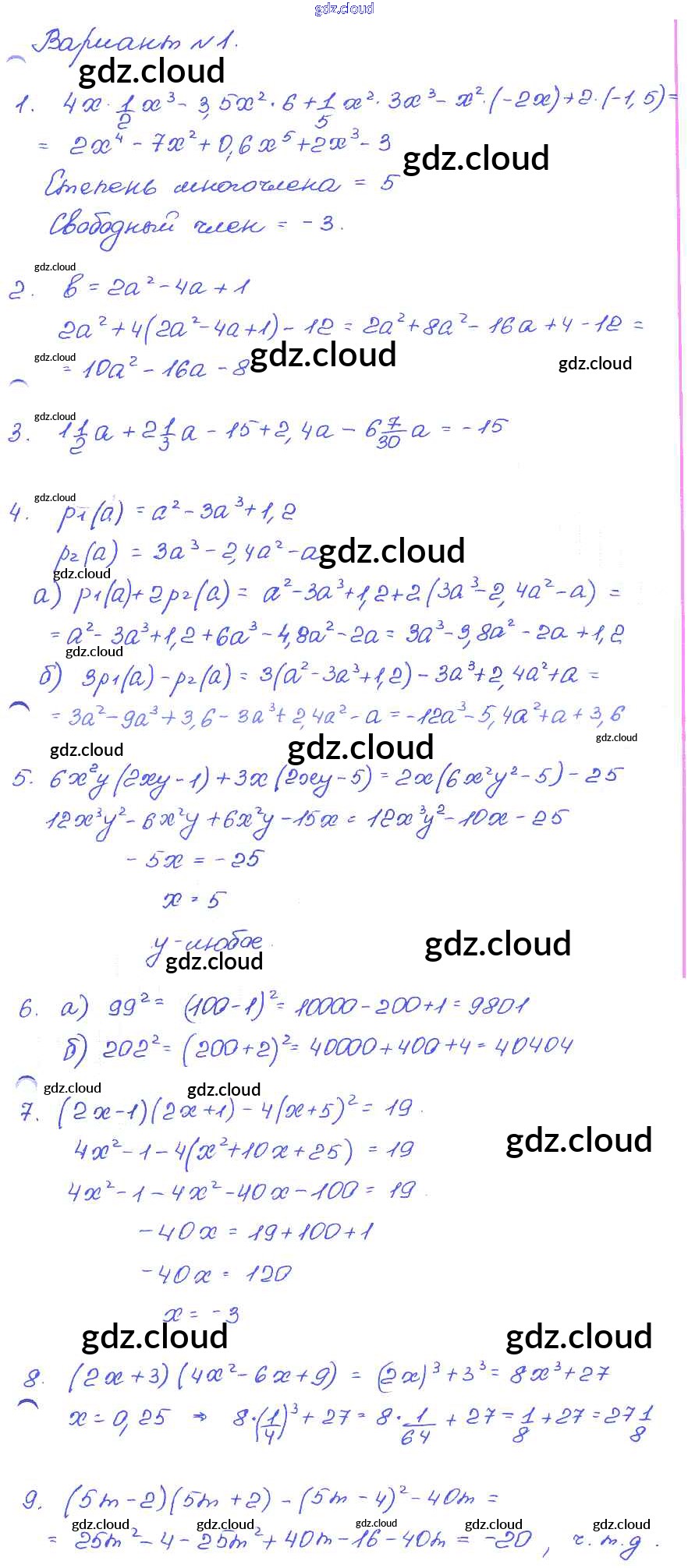 № 6 Ответы к Домашним контрольным работам по Алгебре 7 класс Задачник Мордкович Базовый уровень Часть 2 Мнемозина