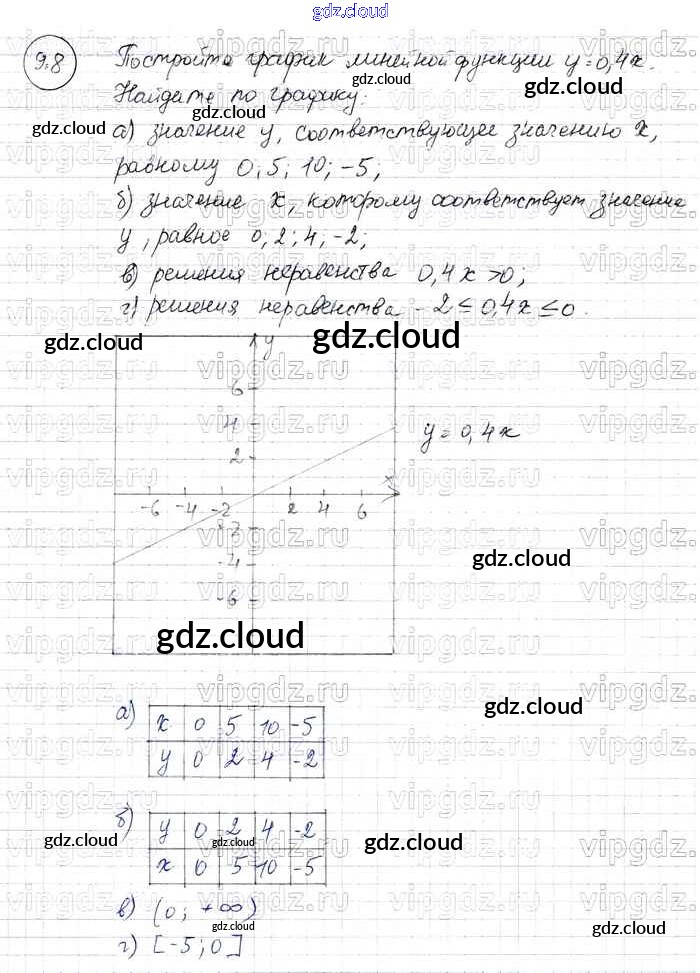 § 9. Линейная функция у = кх Ответы к Главе 2 по Алгебре 7 класс Задачник Мордкович Базовый уровень Часть 2 Мнемозина