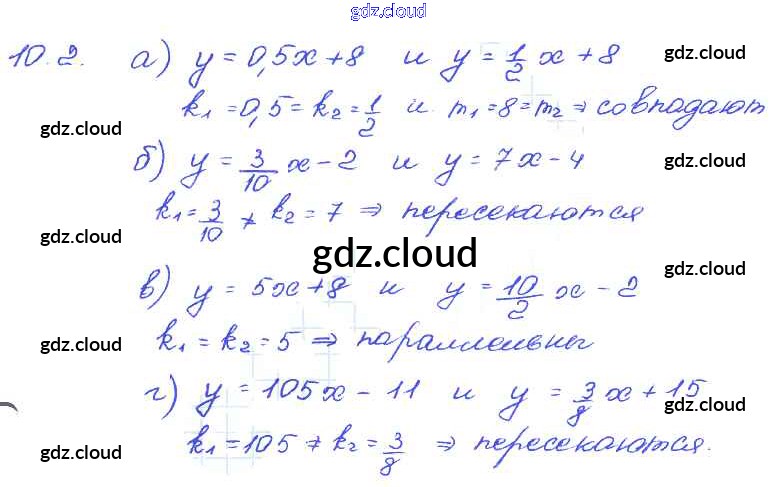 § 10. Взаимное расположение графиков линейных функций Ответы к Главе 2 по Алгебре 7 класс Задачник Мордкович  Базовый уровень Часть 2 Мнемозина
