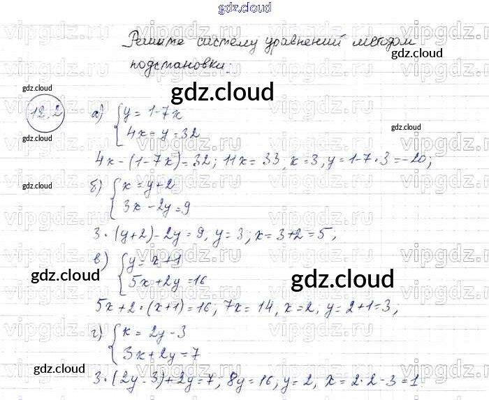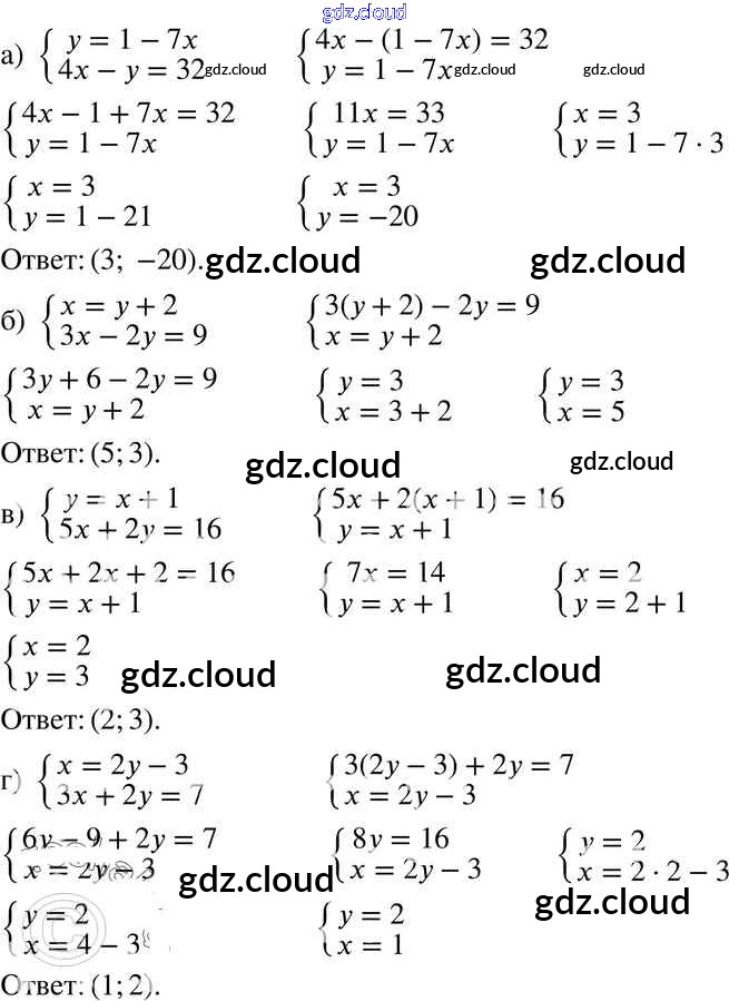 § 12. Метод подстановки Ответы к Главе 3 по Алгебре 7 класс Задачник Мордкович  Базовый уровень Часть 2 Мнемозина