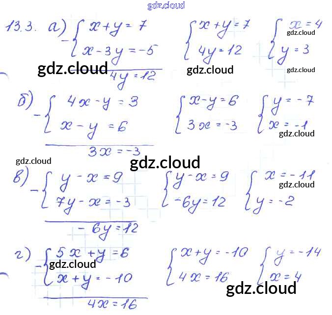 § 13. Метод алгебраического сложения Ответы к Главе 3 по Алгебре 7 класс Задачник Мордкович Базовый уровень Часть 2 Мнемозина