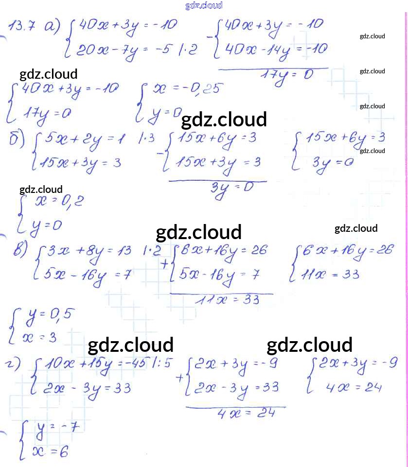 § 13. Метод алгебраического сложения Ответы к Главе 3 по Алгебре 7 класс Задачник Мордкович  Базовый уровень Часть 2 Мнемозина