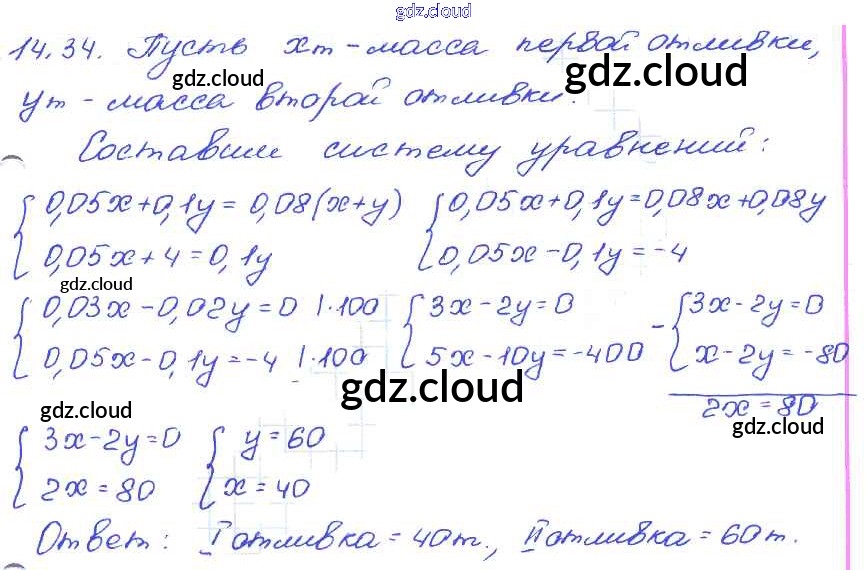 § 14. Системы двух линейных уравнений с двумя переменными как математические модели реальных ситуаций Ответы к Главе 3 по Алгебре 7 класс Задачник Мордкович Базовый уровень Часть 2 Мнемозина