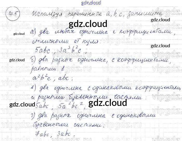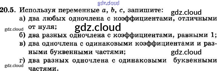 § 20. Понятие одночлена. стандартный вид одночлена Ответы к Главе 5 по Алгебре 7 класс Задачник Мордкович  Базовый уровень Часть 2 Мнемозина