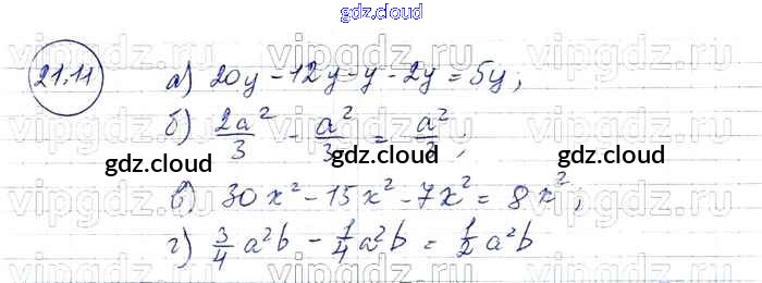 § 21. Сложение и вычитание одочленов Ответы к Главе 5 по Алгебре 7 класс Задачник Мордкович Базовый уровень Часть 2 Мнемозина