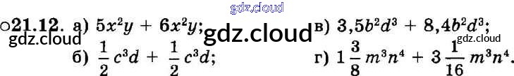 § 21. Сложение и вычитание одочленов Ответы к Главе 5 по Алгебре 7 класс Задачник Мордкович Базовый уровень Часть 2 Мнемозина
