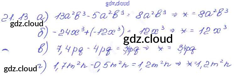 § 21. Сложение и вычитание одочленов Ответы к Главе 5 по Алгебре 7 класс Задачник Мордкович  Базовый уровень Часть 2 Мнемозина