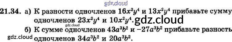 § 21. Сложение и вычитание одочленов Ответы к Главе 5 по Алгебре 7 класс Задачник Мордкович Базовый уровень Часть 2 Мнемозина